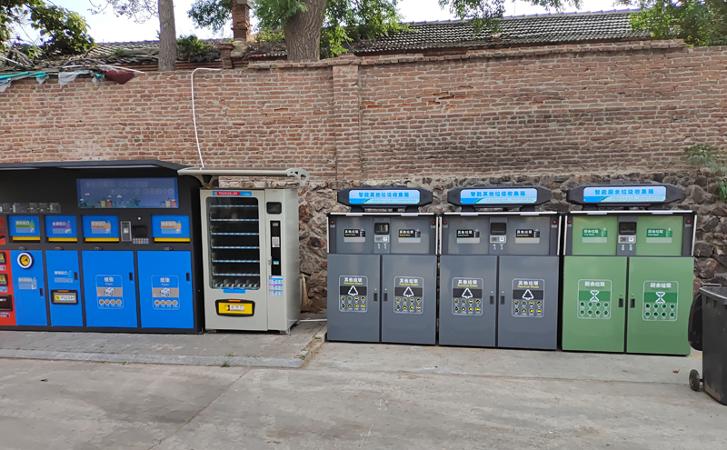 與以往的常規(guī)垃圾桶相比,智能垃圾桶質(zhì)地堅(jiān)固,以鍍鋅板為基材,智能感應(yīng)、人臉識別或掃碼開門,密封性較好,有助于構(gòu)建綠色生態(tài)小區(qū)環(huán)境,且智能垃圾桶投遞后可獲得積分,積分可在禮品兌換機(jī)上兌換禮品,禮品兌換機(jī)為櫥窗展示,積分標(biāo)注明確,與智能垃圾桶并排放置,有助提高居民參與垃圾分類積極性。